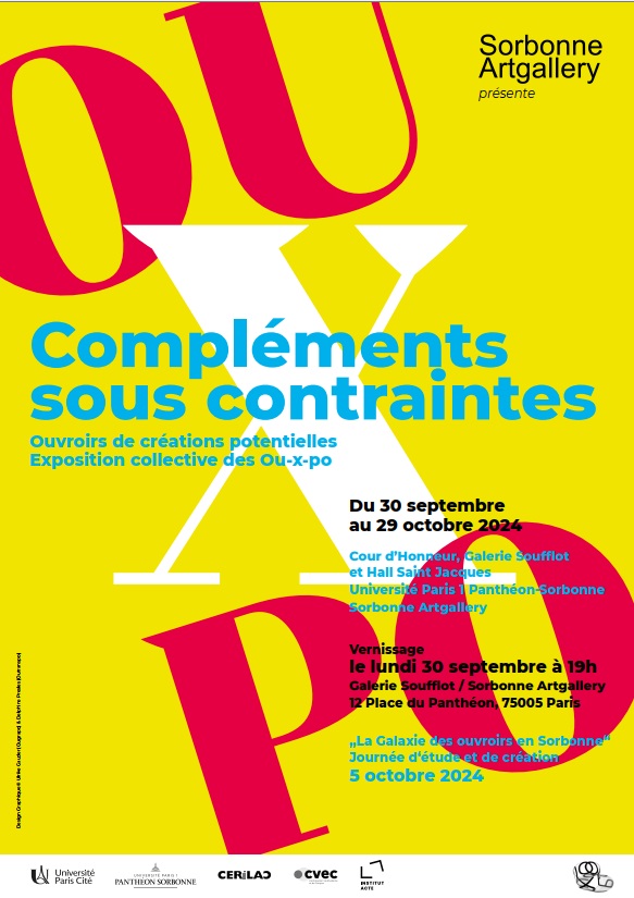 L’Ouxpo étudie actuellement un nouveau principe pour manifester sa mission d’intersection de tous les ouvroirs. Des séances de travail inter-ouvroirs sont en cours sur la notion de complément. Une exposition des premières recherches a eu lieu à Fontenay-sous-Bois. Une nouvelle exposition est en préparation.