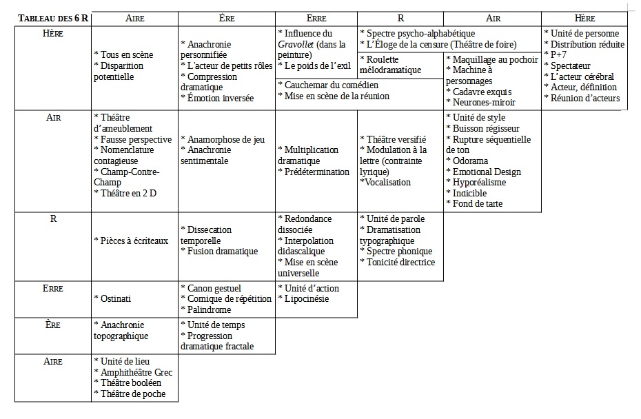 Tableau des 6 R